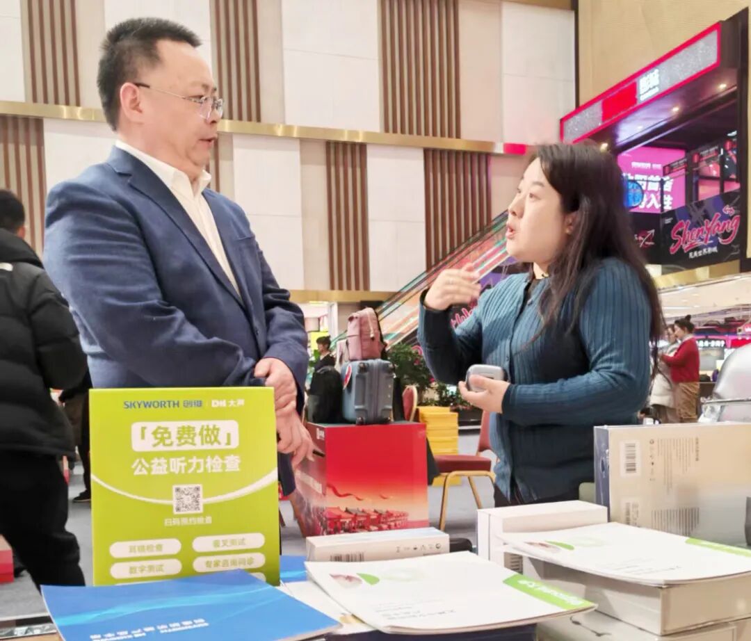 在展会现场,创维大声听力团队的工作人员为前来咨询的老年人进行了详细的产品讲解和实景演示,许多长者在亲身体验后,对产品在复杂环境下的智能降噪效果、清晰音质还原以及简便操作赞不绝口。